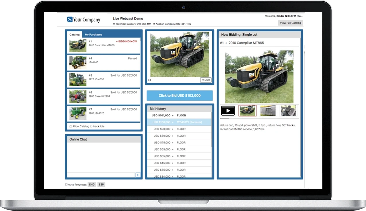 Since its inception, NextLot places the highest value on the protection of its clients’ user data and building their brands. This is why NextLot’s white-label application is integrated into clients’ websites with their logos and colors so it’s branded for them. According to a 2019 Asurion survey, typical people check their phones 96 times per day, which is why NextLot builds clients their very own branded mobile apps. Each time bidders check their phones, they will see an auctioneer’s logo for their bidding app, which builds brand recognition for auction companies. Why promote a marketplace’s brand to an auctioneer’s bidders when the auctioneer’s brand can be promoted to its users instead? When using NextLot’s new webcast application, bidders can look forward to a modern, intuitive interface with large photos and a prominent bid button, all accessible equally easily through desktop and mobile.