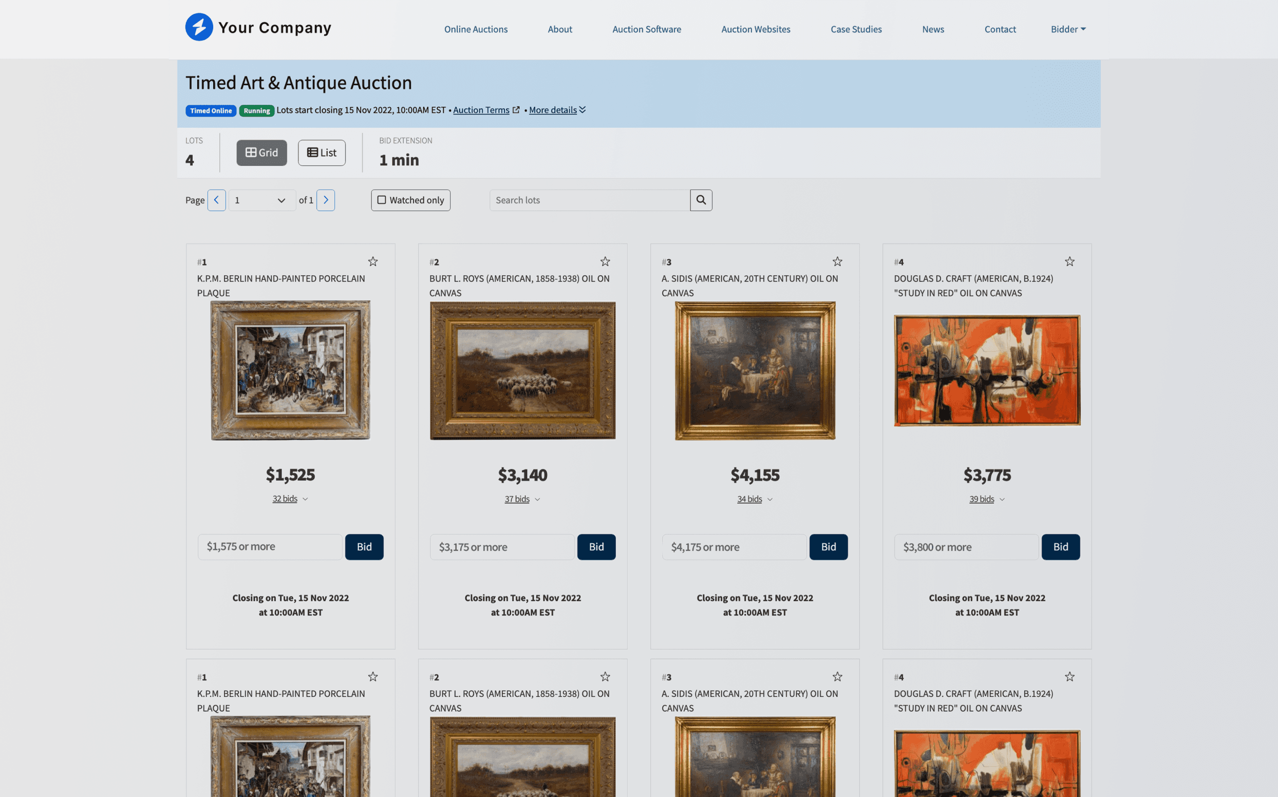 See your lots displayed in a list or grid. With NextLot’s proprietary Fast Bidding mode, watch your lots fall off the page when they close.