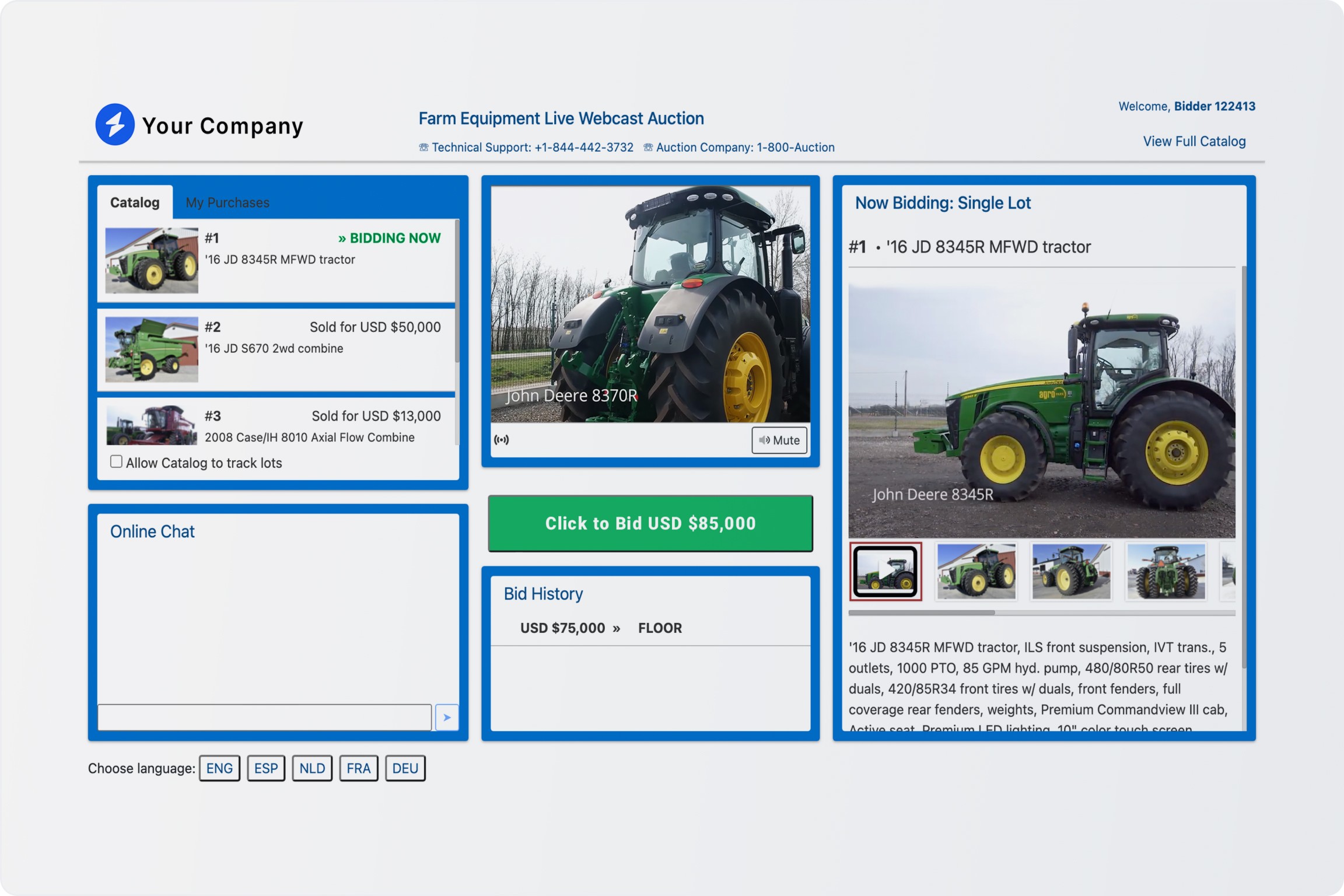 We provide you with a support phone number with your area code, making customer support branded for your auction company.